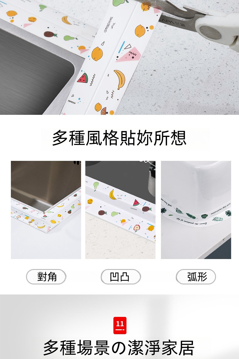 5分鐘前限時搶購 美縫貼防水防霉廚房水槽洗碗灶台封邊擋水條,衛生間馬桶邊緣縫隙貼 - 【嘗鮮價】3入組-NT$980