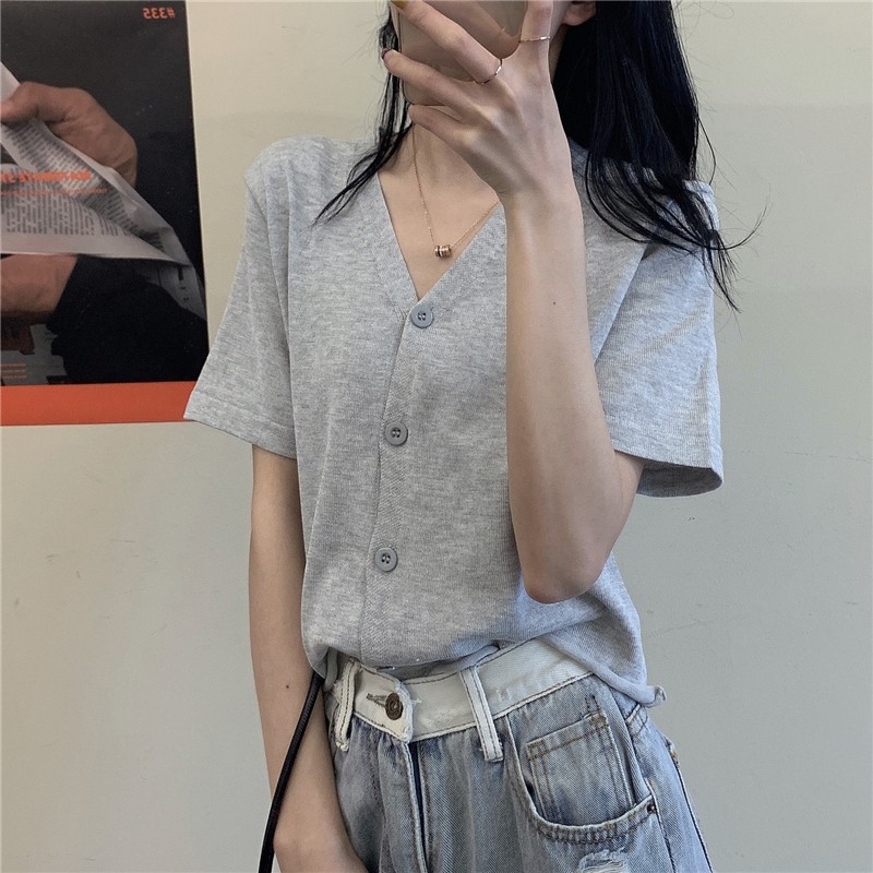 15分鐘前氣質v領薄款打底針織衫,2020夏季新款女裝短款開衫上衣 - 【買一送一】任選2件,僅需NT$998