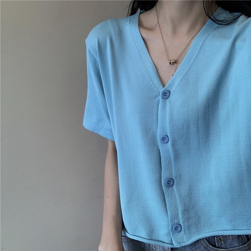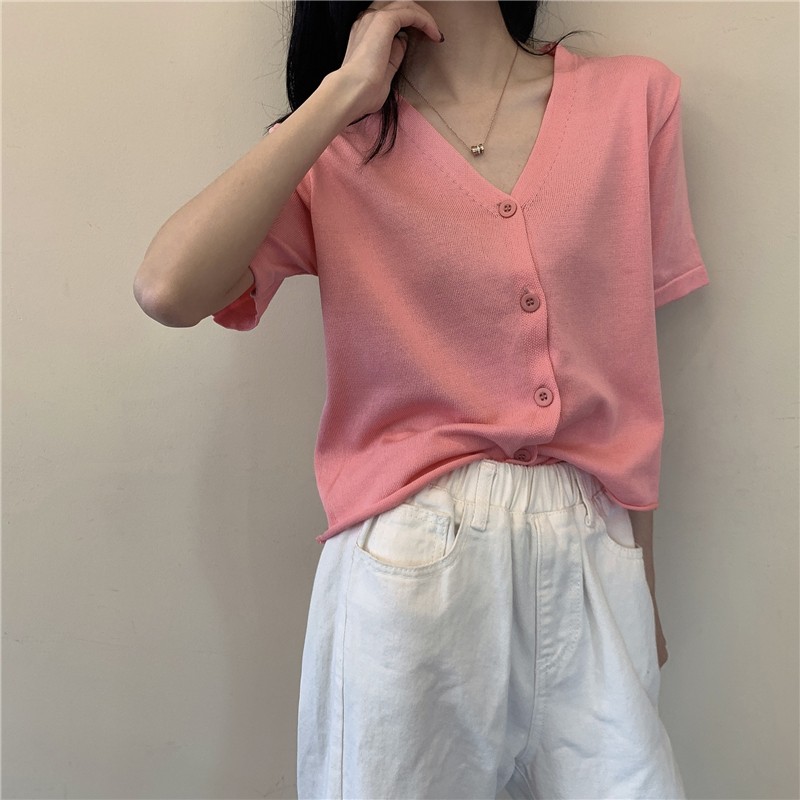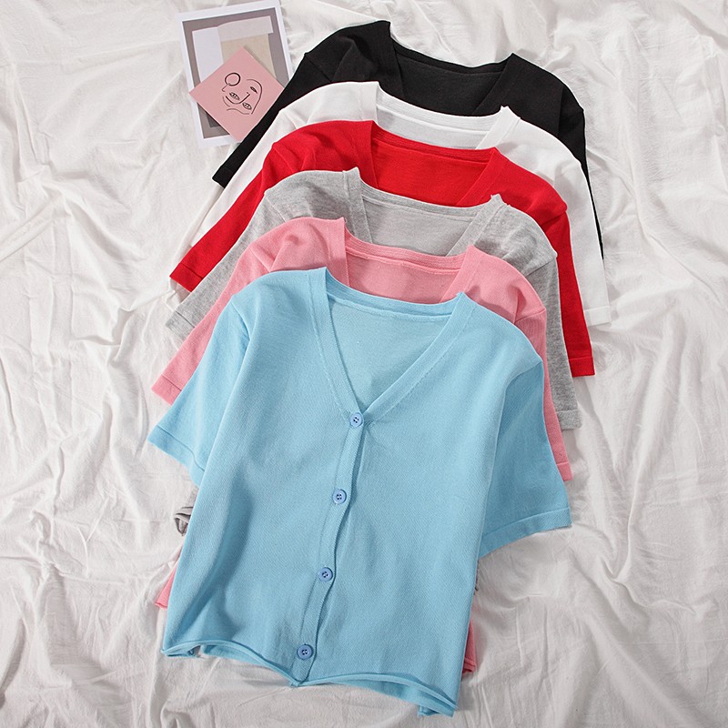 15分鐘前氣質v領薄款打底針織衫,2020夏季新款女裝短款開衫上衣 - 【買一送三】任選4件,僅需NT$1198
