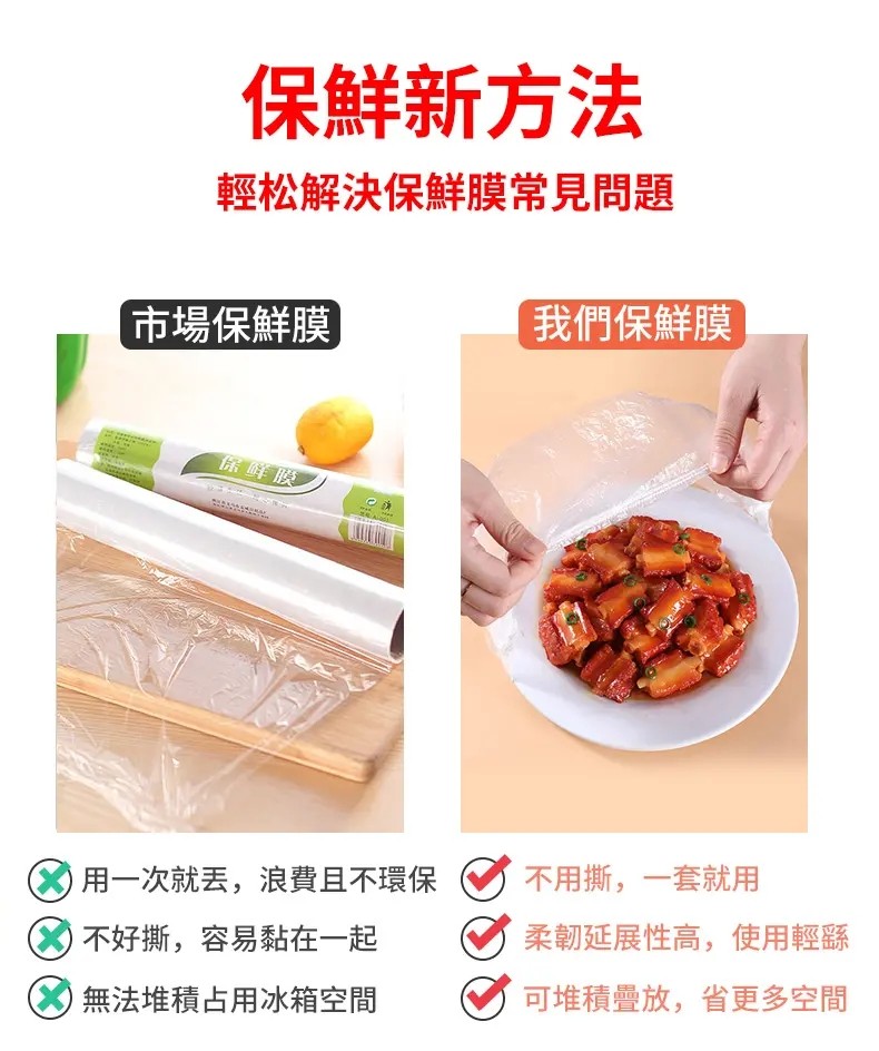 2分鐘前【感恩回饋】食品級鬆緊口鎖鮮膜套剩菜剩飯保鮮套一次性保鮮罩大小碗套通用 - 活動特惠(共發400隻 均價僅需$2.2/隻)免運 NT$899