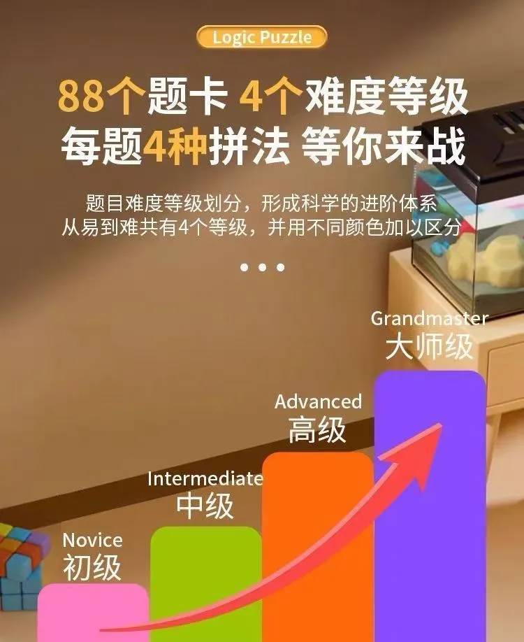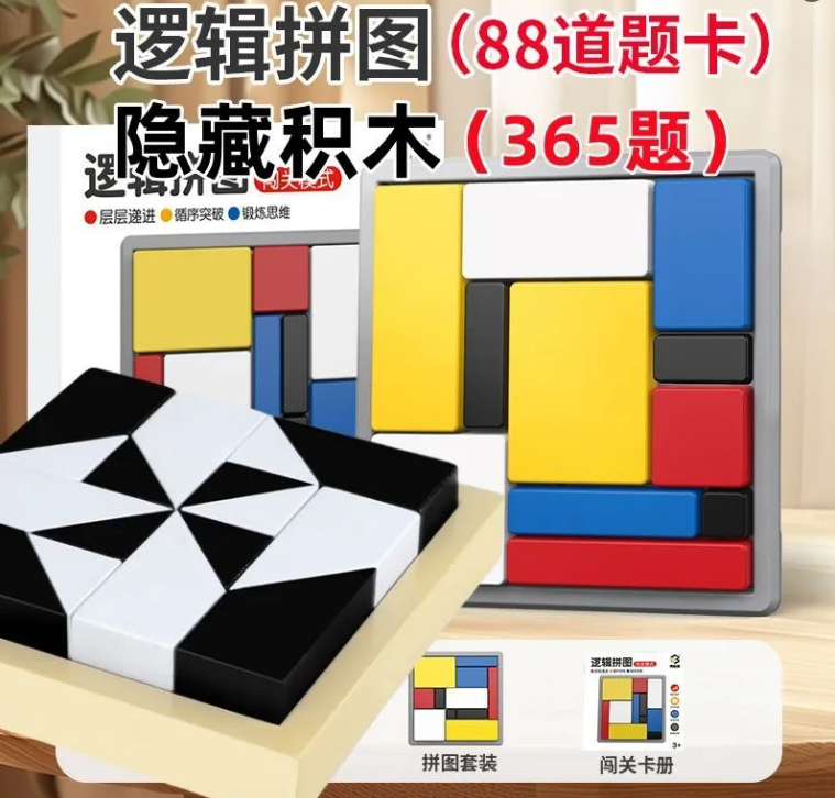 25分鐘前限時搶購 邏輯拼圖,邏輯思維訓練,積木遊戲 ,兒童益智方塊 ,親子互動,智力開發玩具 - 邏輯拼圖+隱藏積木(365關卡+16個積木)1入组 -NT$980