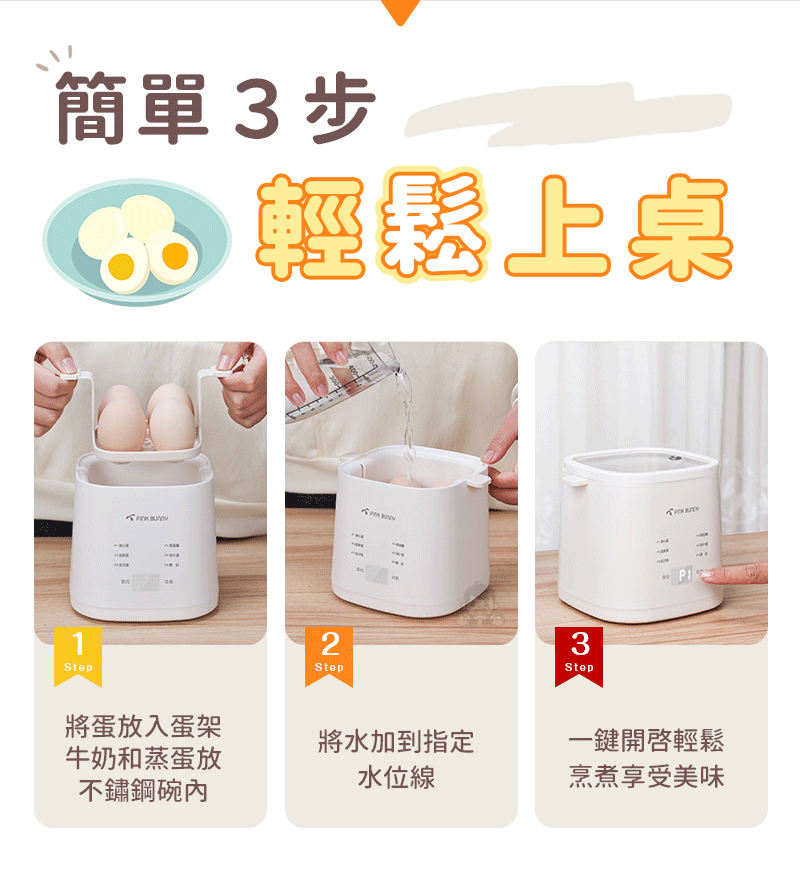 半小時前Pink Bunny智能煮蛋機智能控溫烹煮,營養美味輕鬆上桌 - Pink Bunny智能煮蛋機2入組 NT$1990