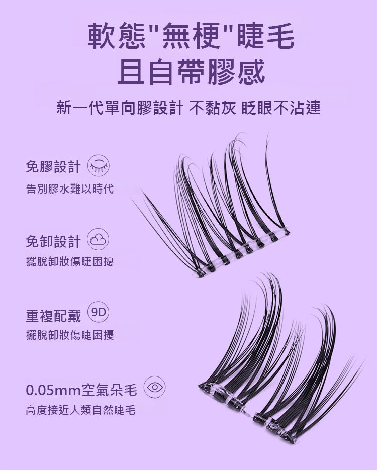 15分鐘前【0甲醛】無梗免膠媽生假睫毛 - 【超殺】3入組$229